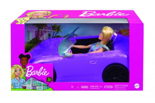 ¡Las niñas podrán acelerar hacia la aventura con la muñeca Barbie y su descapotable morado! Este conjunto de muñeca y coche incluye un moderno deportivo descapotable con dos asientos y detalles realistas, como una rejilla y ruedas de color negro mate, cinturones de seguridad y detalles plateados. Los divertidos toques con el estilo característico de Barbie incluyen una placa de matrícula personalizada y la emblemática silueta de Barbie. Con su vestido moderno con un estampado de palmeras y unas elegantes sandalias blancas, la muñeca Barbie está lista para vivir cualquier aventura con la que las niñas puedan soñar. La muñeca no puede tenerse en pie por sí sola. Los colores y la decoración pueden variar. ¡Lánzate a la carretera y diviértete imaginando historias con la muñeca Barbie y su descapotable morado! Abróchale el cinturón a la muñeca Barbie y dale impulso a tu historia con las ruedas giratorias y los detalles realistas, como adornos plateados, una rejilla y ruedas de color negro mate. Este moderno descapotable es deportivo y tiene dos asientos, una matrícula personalizada y la emblemática silueta de Barbie. La muñeca Barbie está lista para cualquier aventura, con un vestido moderno con estampado de palmeras y unas elegantes sandalias blancas. Este conjunto de muñeca y coche de Barbie es un regalo ideal para niñas de 3 a 7 años. ¡Podrán coleccionar otras muñecas y conjuntos de Barbie para ampliar las posibilidades de juego! Se venden por separado y están sujetos a disponibilidad.Advertencia: No conviene para niños menores de 36 meses.