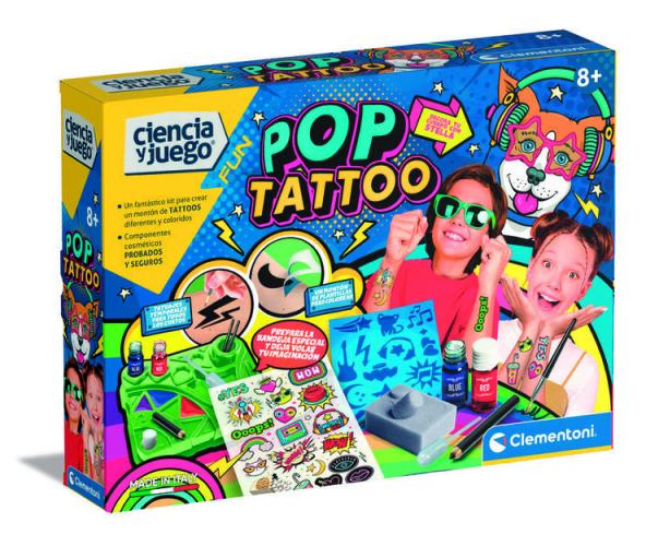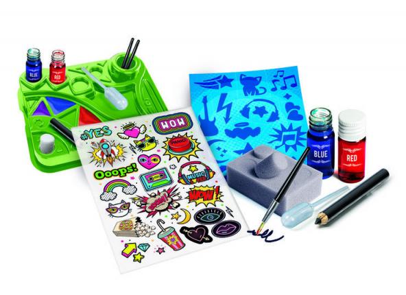 ¡La tattoo manía ha estallado!, ¡Vamos a divertirnos creando magníficos tatuajes al estilo pop! Guiados por Stella, la estrella del pop, los niños podrán crear fantásticos tatuajes ultra personalizados. Con este kit los niños podrán decorar su cuerpo con tatuajes de colores o calcomanías y perfeccionar sus habilidades manuales haciendo moldes de yeso para pintar. ¡No solo aprenderán el arte del tatuaje, sino Historia y Ciencia! El manual introducirá al niño en el mundo de los tatuajes, su origen y los diferentes estilos. Contenido: un banco de trabajo de tatuador, colorantes líquidos, esponjas, lápiz, pinceles, tatuajes y plantillas de calcomanías, yeso y moldes. A partir de 8 años.