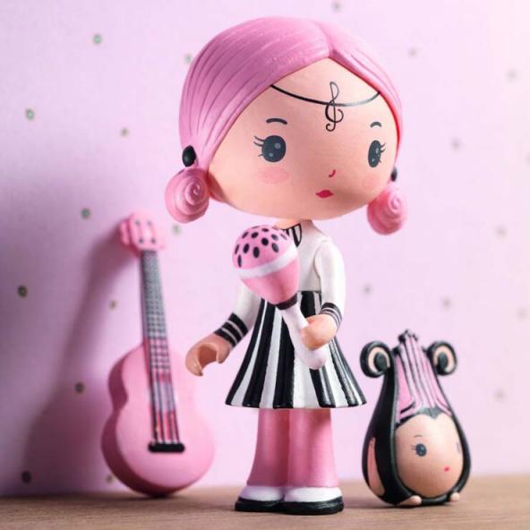 Conoce a Sidonie, amante de la música rock, con su inseparable guitarra color rosa, su micrófono y su fiel compañera Zick.Esta adorable figurita de cabeza y brazos articulados con complementos extraíbles te ayudará a crear miles de historias del universo poético de Tinyly.A partir de 4 años.