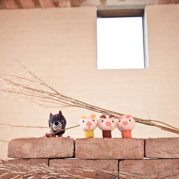 Títeres de decir con el lobo y los 3 cerditos. Cada cerdito representa 1 emoción diferente. Medidas: 5,5×5,5×7 cm.