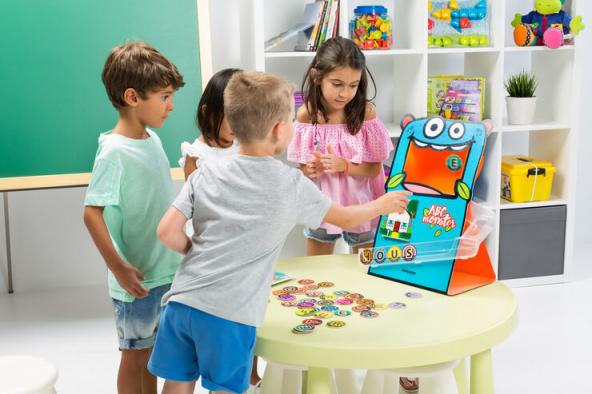 Juego didáctico que ayuda a mejorar las habilidades de lectoescritura. ¡El monstruo traga-letras tiene mucha hambre! Los discos son letras que se insertan en la boca del monstruo y resultan palabras.Es un juego activo y muy divertido con diferentes modalidades con el que se trabaja la inteligencia lingüística y la emocional.Contiene: 1 monstruo traga-letras, 48 discos de letras, 30 tarjetas de juego, 1 bolsa para guardar todo y 1 guía didáctica.De 3 a 7 años.