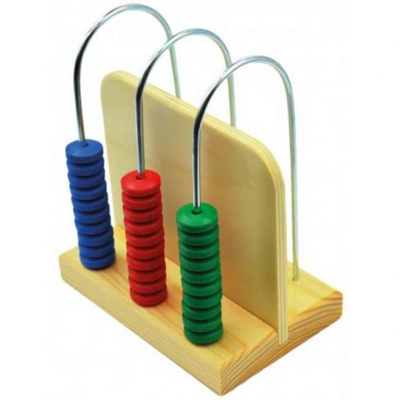 Ábaco de 3 columnas. Útil para identificar, conocer el valor posicional y la descomposición del número.Base de madera maciza, varillas niqueladas y fichas de plástico.
