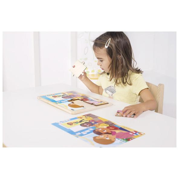 Puzle de madera de 12 piezas, con una ilustración sobre el tema de la pena. Ideal para empezar a aprender sobre las emociones.Presenta 2 niveles de dificultad progresiva gracias a los modelos de doble cara en color o blanco y negro.Los puzles estimulan el pensamiento lógico, la concentración y la memoria, además de promover la paciencia y reducir el estrés, brindando una experiencia entretenida y enriquecedora.La medida aproximada del puzle es de 30 x 21 cm.Recomendado a partir de 3 años.